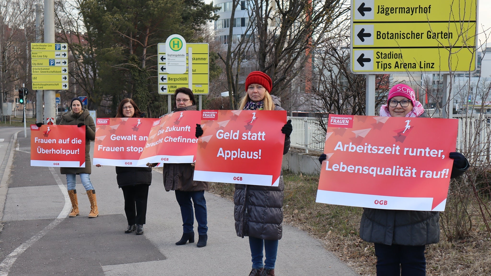 Mehr Frauen in Führungspositionen und eine Aufwertung von Branchen, in denen besonders viele Frauen arbeiten sowie kürzere und besser planbare Arbeitszeiten braucht es, um die Benachteiligung von Frauen am Arbeitsmarkt aufzulösen. „Wenn wir Gleichberechtigung im Erwerbsleben erreichen wollen, müssen die Frauen endlich aufholen“, sagt ÖGB-Frauenvorsitzende Elfriede Schober. Anlässlich des Internationalen Frauentags am 8. März machen die ÖGB-Frauen an den Linzer Einfahrtstraßen auf ihre Forderungen aufmerksam.