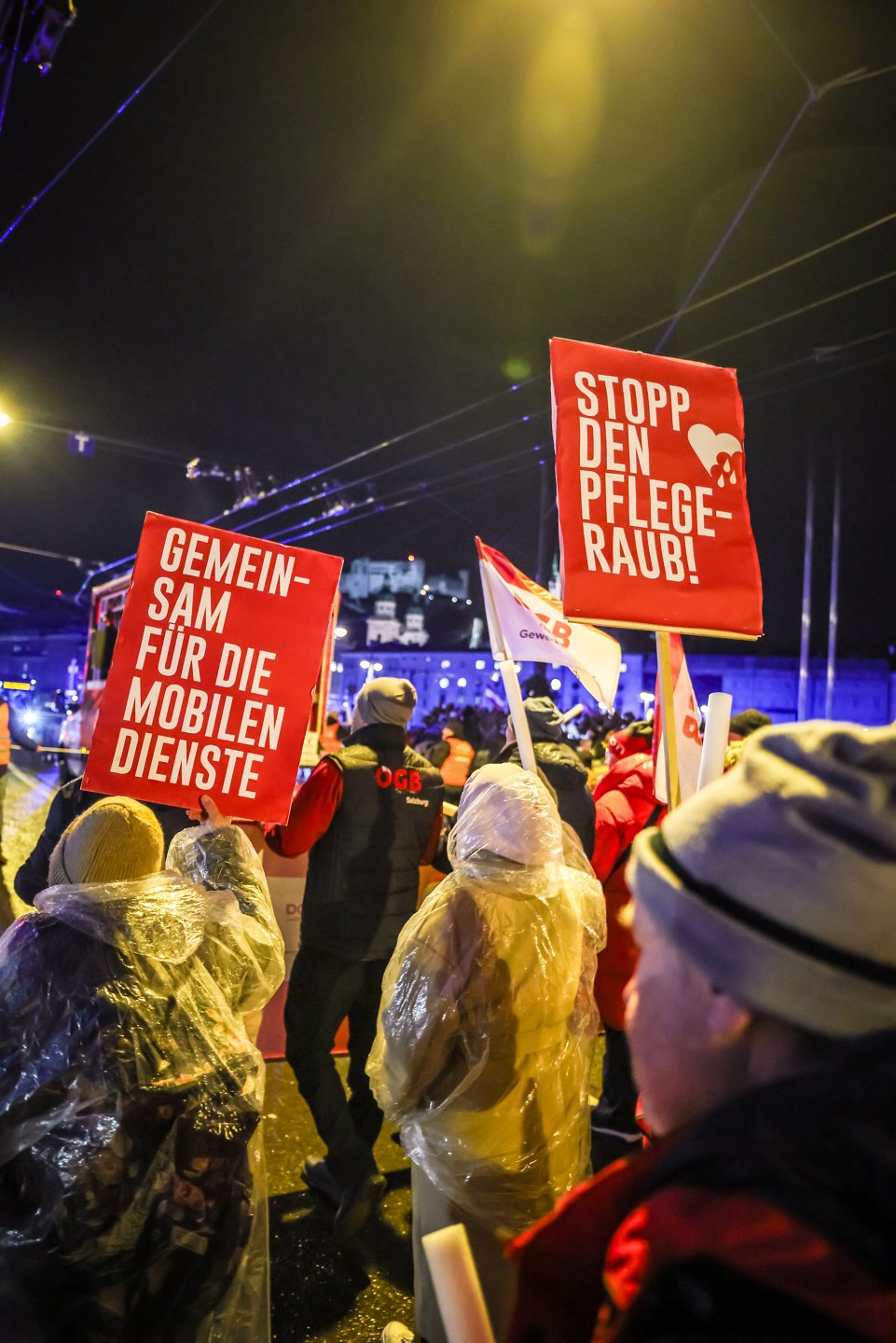 Am 25. November 2025 haben ÖGB, Gewerkschaften und Arbeiterkammer Salzburg die Petition „Stopp den Pflegeraub“ dem Salzburger Landtag übergeben. Mehr als 82.000 Menschen haben bis dahin die Petition unterstützt. Doch die Regierungsparteien bleiben hart, wie im Petitionsausschuss des Salzburger Landtags offensichtlich wurde, der Mitte Jänner stattfand. Sie haben die Petition abgelehnt. „82.000 Unterschriften und 12.000 Demonstrierende auf Salzburgs Straßen wurden erneut ignoriert. Denn ihr Protest bleibt ungehört. Die Regierungsparteien bleiben bei ihrem harten Kurs und haben erneut bestätigt, dass sie das Geld für den Pflegebonus behalten und nicht an jene weitergeben, die es verdient haben: die Beschäftigten in der Pflege und Betreuung, die seit Jahren über ihre Belastungsgrenze hinaus arbeiten, um die Versorgung im Gesundheits- und Sozialbereich aufrecht zu halten.“, fasst ÖGB-Landesvorsitzender & AK-Präsident Peter Eder zusammen und ergänzt: „Schon jetzt sehen wir, dass die Wartelisten in den Krankenhäusern immer länger werden, dass Betten in den Seniorenwohnhäusern gesperrt sind, weil es an Personal fehlt und dabei die Wartelisten für jene, die dringend betreut und gepflegt werden müssen, immer länger werden. Und da auch die mobile Pflege komplett ausgelastet ist, fehlt es auch noch an den notwendigen Unterstützungsangeboten für jene, die zuhause betreut werden. Würden die Beschäftigten nicht bis über ihre Grenzen hinaus arbeiten, wäre die Situation noch drastischer.“