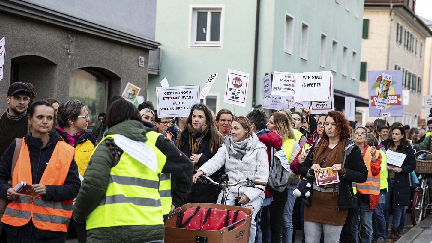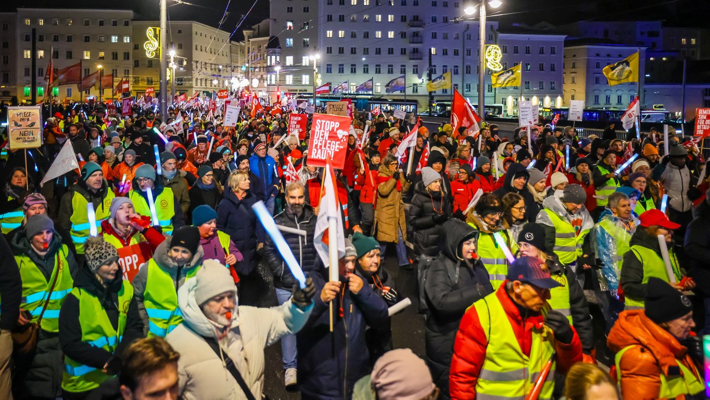 Ein lautstarkes Zeichen gab es auch am 25. November in Salzburg, und zwar bei der größten Demo der letzten Jahrzehnte in Salzburg. 12.000 Demonstrierende haben dabei ein solidarisches Zeichen gesetzt und gemeinsam für den Erhalt des Pflegebonus demonstriert.