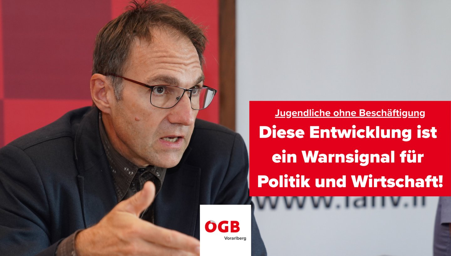 Die Zahl junger Menschen ohne Arbeit oder Ausbildung in Vorarlberg ist alarmierend hoch. Laut aktuellen Daten von Statistik Austria waren 2023 14,9 Prozent der 15- bis 24-Jährigen weder in Beschäftigung noch in Ausbildung oder Schulung – das ist der zweithöchste Wert aller Bundesländer. Österreichweit sind rund 122.000 Jugendliche sogenannte „NEETs“ (Not in Employment, Education or Training). Und dieser Wert bleibt seit 15 Jahren nahezu unverändert. Für den Landesvorsitzenden des ÖGB Vorarlberg, Reinhard Stemmer, ist klar: „Diese Entwicklung ist ein Warnsignal für Politik und Wirtschaft.“