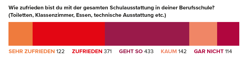 Nur mit den modernsten Geräten können Lehrlinge auch für die Zukunft qualitativ und hochwertig ausgebildet und auf die Arbeitswelt vorbereitet werden. Laut der Umfrage sind aber nur 41 Prozent der Befragten mit der gesamten Schulausstattung sehr zufrieden oder zufrieden. Demgegenüber stehen rund 22 Prozent, die kaum oder gar nicht zufrieden sind. Nicht einmal die Hälfte der Lehrlinge (43 Prozent) bekommt einen Laptop oder ein Tablet zur Verfügung gestellt.